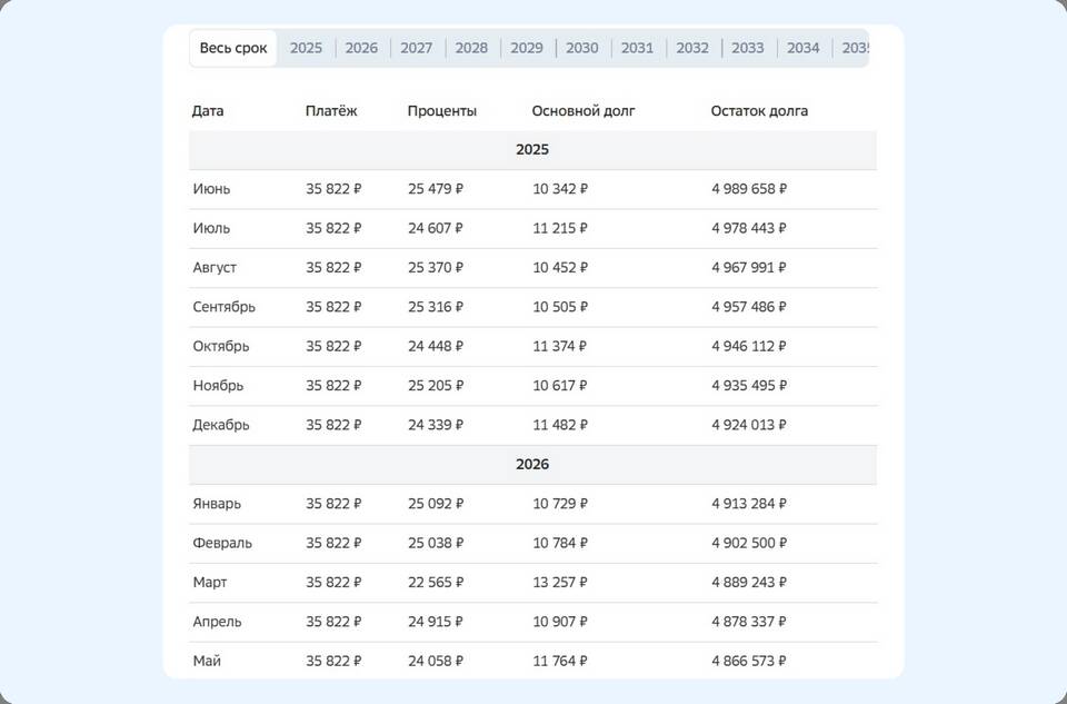 | Частичное досрочное | Уменьшение ежемесячного платежа |