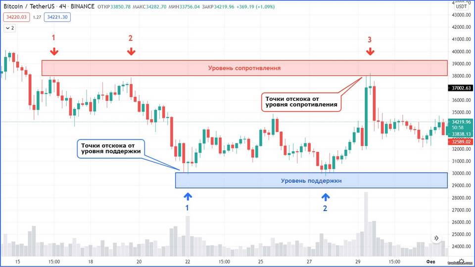 | Уровень поддержки | Ценовая зона, где покупательский интерес достаточно силен, чтобы остановить падение |